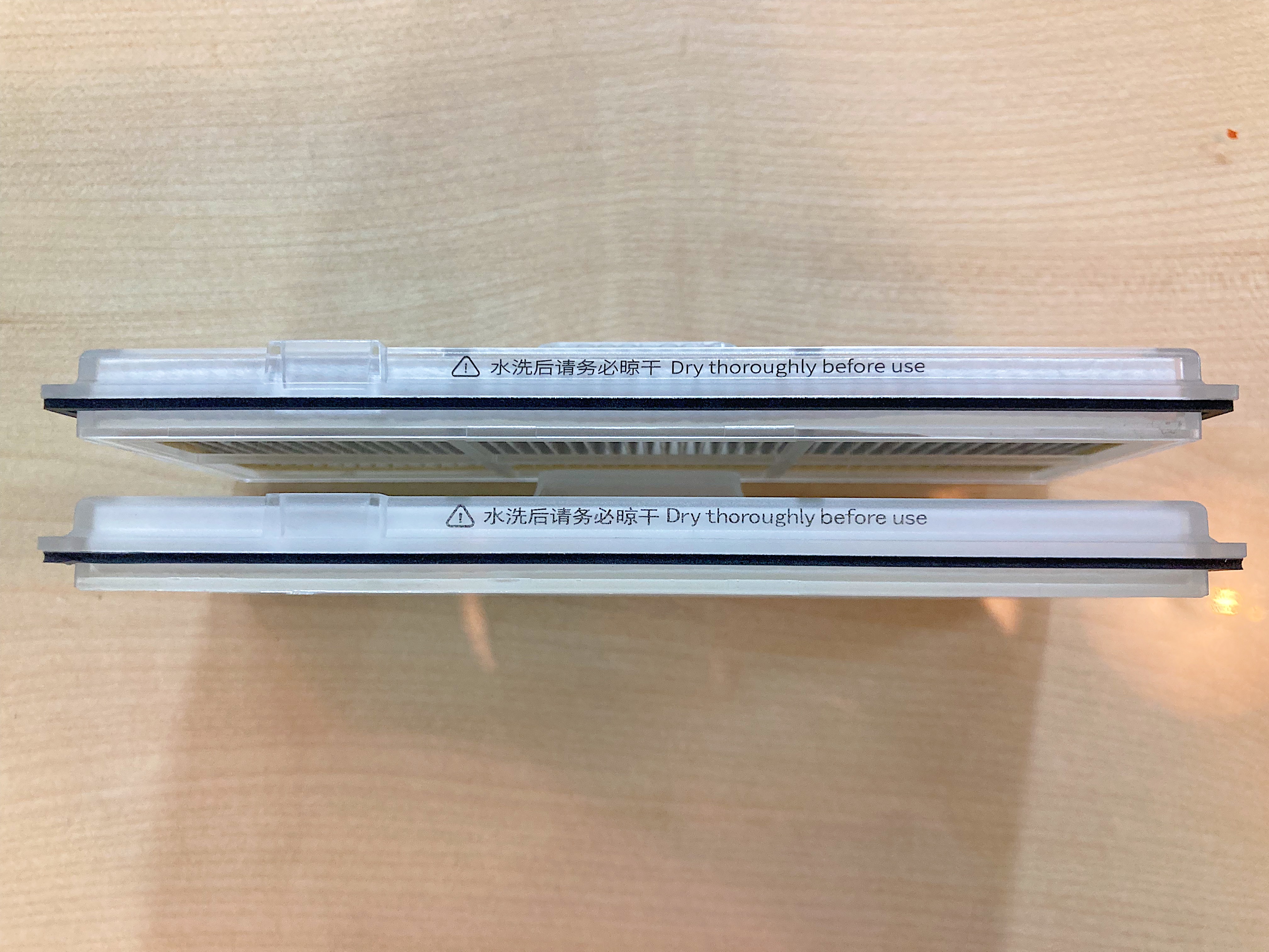 포장을 다 뜯어내고 먼지통 필터만 비교했을 때도 로보락 로고가 새겨져 있는 플라스틱 손잡이 부분이 기존 것보다 약간 불투명해졌다는 정도의 차이가 있으나 그 정도는 로보락 로봇청소기가 S7에서 S8에서 업그레이드 되면서 변경되었을 수도 있기 때문에 제가 보기에는 동일한 제품으로 보입니다.