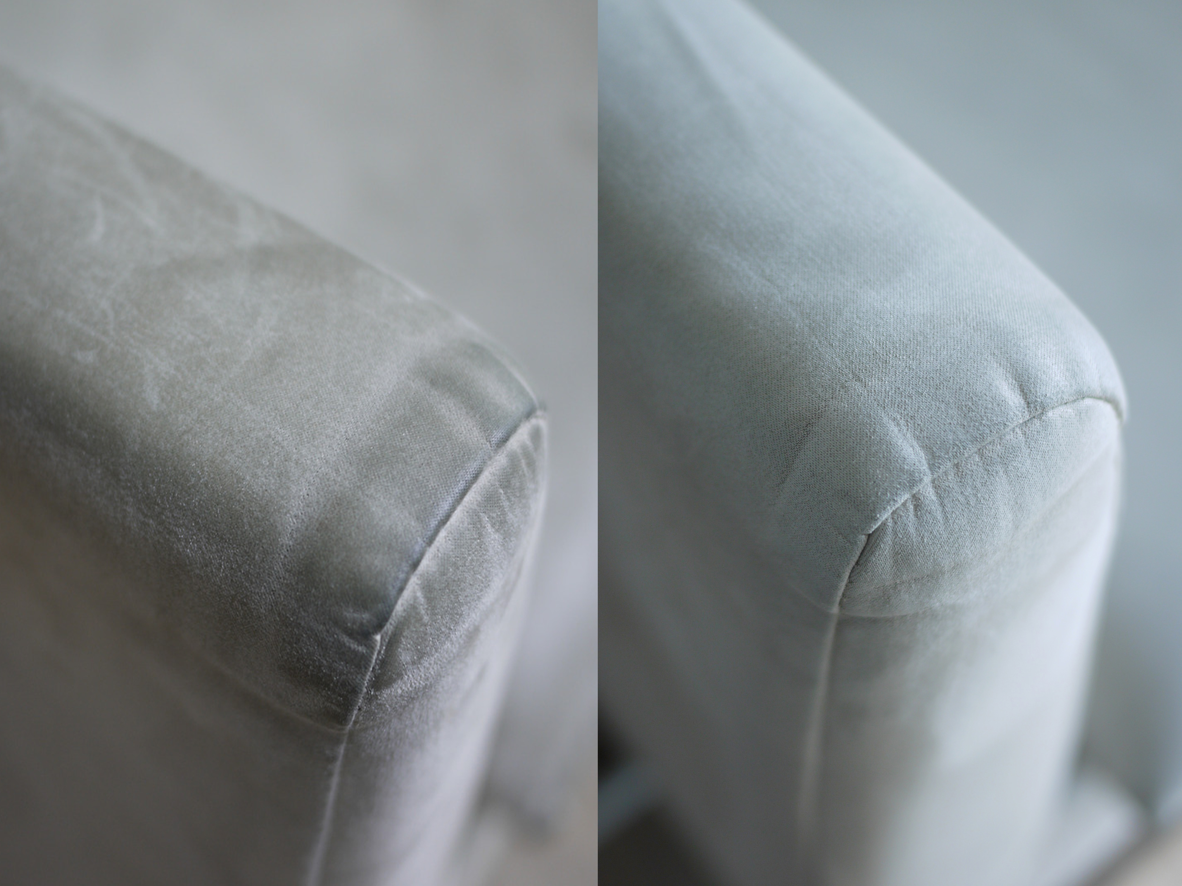 다른 부분의 베이킹소다 청소 전후 사진입니다. 자코모 소파케어서비스를 받은 것보다 더 깨끗해졌습니다. 특히 소파 방석 끝부분은 진짜 절망적인 부분이었는데 깨끗해진 모습을 보면 가장 보람이 느껴진 부분이었습니다.